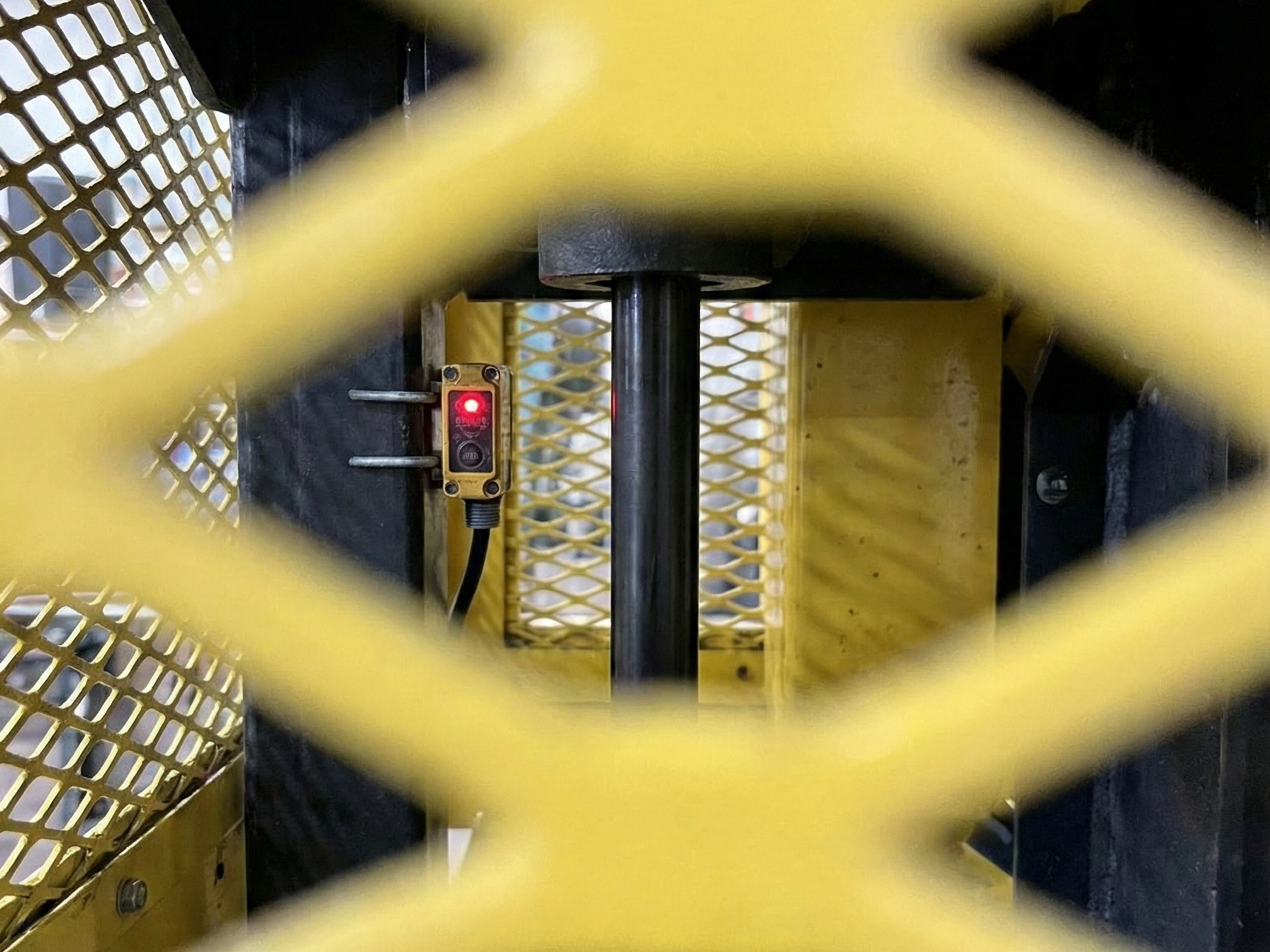 This metal shear does exactly that: it shears. The problem is that the owner had no idea how often this unit was running or how many cycles the machine had completed daily. The easiest solution was to attach a diffused photo-eye to the machine. We determined that when the machine was making a cut to metal the shaft of the shear would drop within a range that the photo eye could capture. As long as the photo eye changed states (ON/OFF) within 5 minutes, we considered the machine as active.